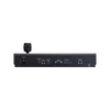 Pentru mișcările fine de panoramare sau înclinare, RC - IP100 dispune de un joystick de precizie situat pe partea dreaptă, iar pe cealaltă parte a controler-ului există un basculant zoom, oferind un aspect ergonomic pentru a controla panoramarea, înclinarea și zoom-ul simultan cu două mâini. De asemenea, are patru butoane și butoane personalizabile pentru a accesa setările și comenzile rapid și ușor. Portul de intrare / ieșire DB-9 din partea din spate vă permite să monitorizați informațiile de calcul ale camerei. Unitatea este alimentată cu ajutorul unui adaptor de alimentare cu baril de 12V.