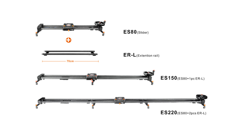 Șina extensibilă E-Image ER-L pentru slidere, atașată la capetele unui slider, permite extinderea acestuia prin adăugarea de tije din fibră de carbon la fiecare 70 cm. Culoare: Negru Material: Carbon